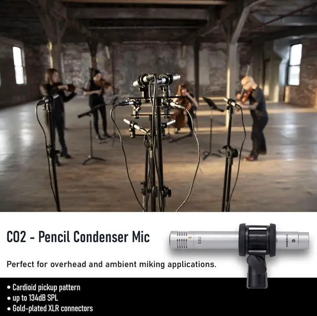 SEVEN PIECE DRUM KIT INCLUDES: It includes 4 Q72 instrument mics, a Q71 kick drum mic, 2 CO2 pencil condenser mics for overhead miking, seven swivel-style mic adapters, four tension-mounted rim clips, and a hardshell carrying case.