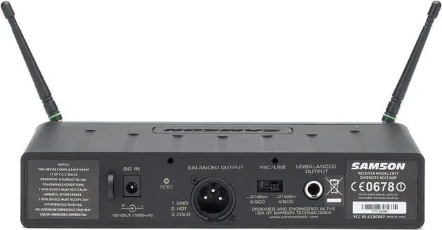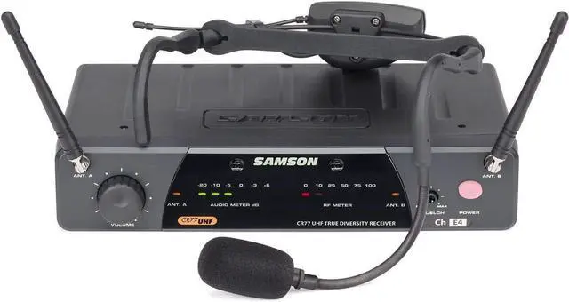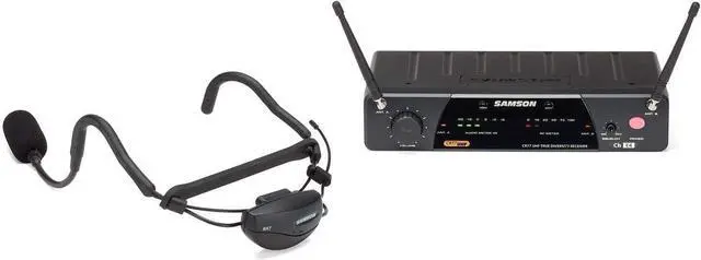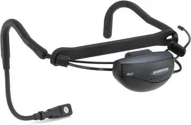 The Samson AirLine 77 AH7 Fitness Headset system is a wireless microphone solution designed to meet the specific demands of fitness instructors and active performers. With the unique AH7 micro transmitter mounted to a sweat-resistant Qe fitness headset microphone, you can free yourself completely from cables and beltpacks for a truly exhilarating and motivating experience. This allows you to focus on your class or performance, and not have to worry about your audio.Move FreeSamson revolutionized wireless with the original AirLine transmitter. Building upon this groundbreaking technology, the AH7 micro transmitter is mounted directly on the headset. This is unique when compared to traditional wireless systems that typically use a beltpack with a wire running from the microphone to the transmitter. The AH7 eliminates these extra components that would be especially cumbersome for a fitness instructor and puts everything you need neatly and comfortably around your head. And the transmitter operates for up to eight hours straight on a single AAA battery.The Right Mic for FitnessThe AH7 Headset Transmitter is mounted to a lightweight, adjustable headset that fits comfortably around your ears and the back of your head, even through those days when you're teaching back-to-back classes for hours on end. The headset also features the Samson Qe condenser microphone, whose sweat-resistant capsule prevents corrosion from prolonged exposure to moisture. In addition, the mic's bidirectional pickup pattern reduces background noise, minimizes feedback problems and effectively rejects signals not originating directly in front of the mic capsule.Sound ReceivedThe CR77 True Diversity receiver provides reliable performance with up to 300' (90m) of wireless operation. Its half-rack housing is light enough to throw in your bag, or it can be permanently installed with a rackmount kit (sold separately). The rear panel features balanced XLR and unbalanced 1/4 outputs allowing fl
