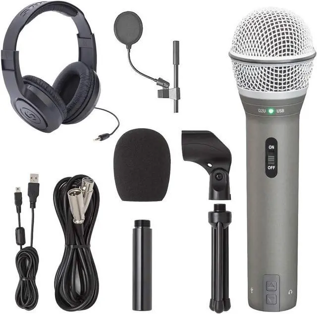IT'S ALL IN THE BOX: The Q2U Recording and Podcasting Pack includes everything you need to start recording great-sounding projects: an extended desktop stand with a mic clip that positions the microphone close to the sound source, a pop-filter for reducing p-pops, and USB and XLR cables.