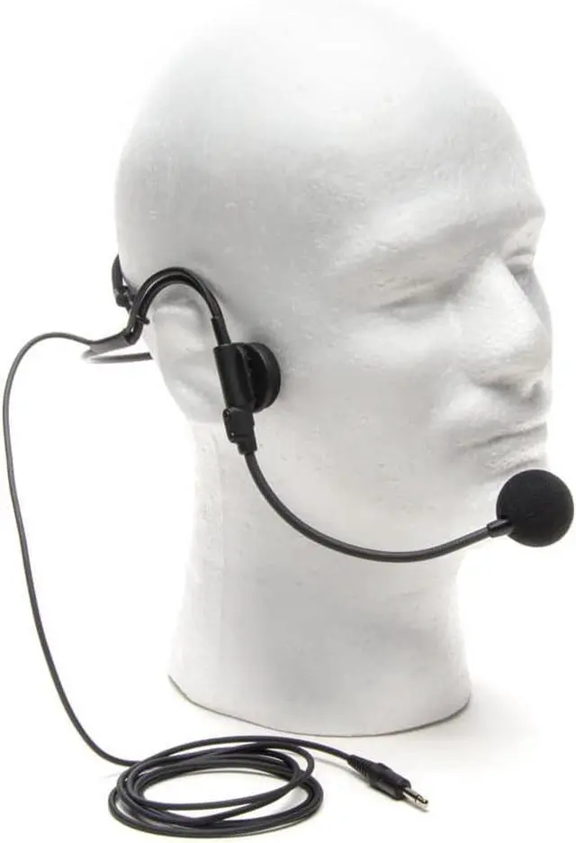 High quality uni-directional vocal headset which has a gooseneck-adjustable mic and adjustable rear head-band for a more comfortable fit. Comes with a wired 3,5mm mini-jack connector.