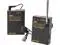LEDs on transmitter and receiver to confirm system status. Earphone included to monitor sound that is being recorded. Receiver plugs into camera's external microphone jack. Both units use one 9V battery each. Includes WR-PRO receiver, WM-PRO belt-pack transmitter, and lavaliere electret condenser microphone.