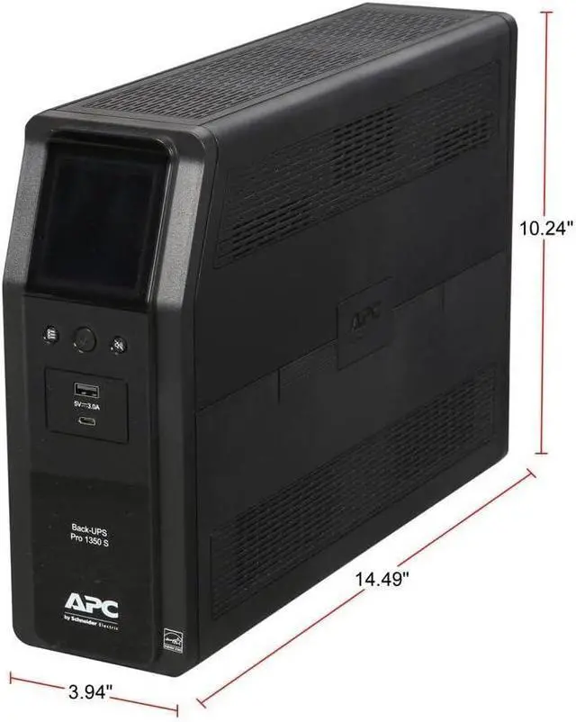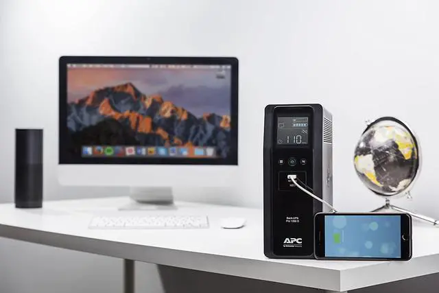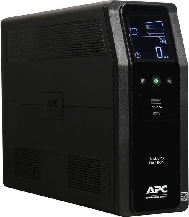 This APC 1350VA battery back up power supply offers guaranteed power and surge protection for wireless networks, computers, and other electronics in your home or business. Backup battery power supply is designed for use during outages and unsafe voltage fluctuations, and provides surge protector with battery backup in the event of damaging power surges and spikes. The APC Back-UPS PRO series of Uninterruptible Power Supply are the perfect battery backup for computer, external harddrive and routers to protect your data and keep you connected. This APC BR1350MS SinewaveUPS offers AVR, is active PFC compatible, and has a User-replaceable battery to prolong the life of your UPS by APC, which makes a great back up power for home