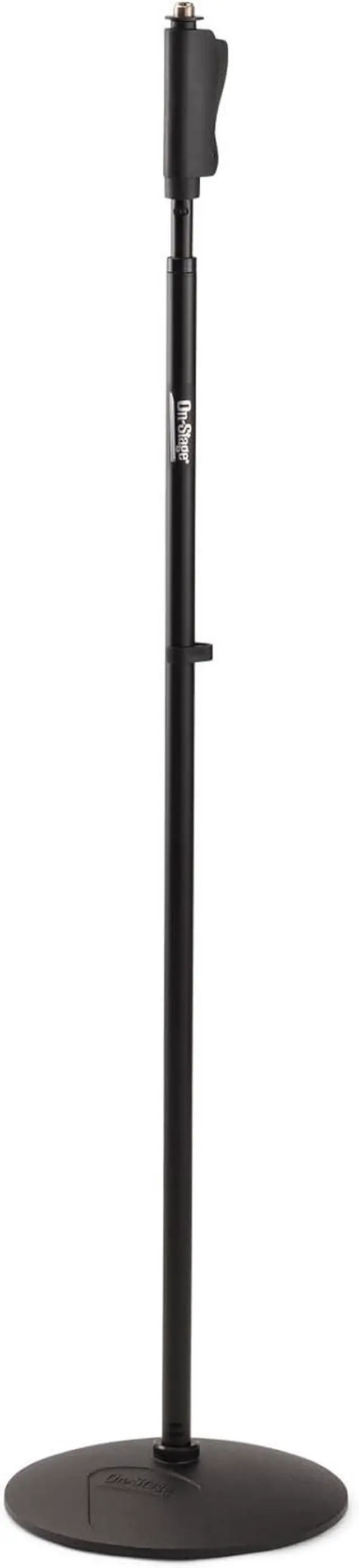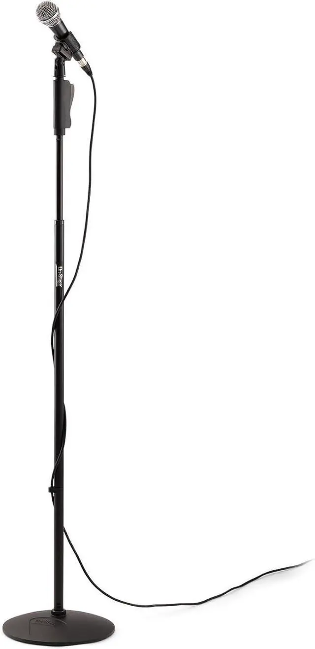 Easy height adjustments with specialized clutch Compatible with standard dynamic & condenser mic mounts Rugged & durable steel construction 10 Rounded base with rubber non-slip padding Black powder-coat finish that resists chips & scratches