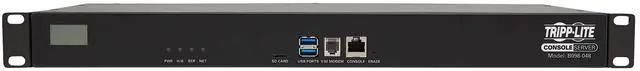 Contents: B098-048 48-Port Serial Console Server 2 x C13 to NEMA 5-15P Power Cords, 6 ft. 2 x Cat5e Patch Cables, 6 ft. 2.4 GHz SMA Wi-Fi Diversity Antenna Straight-through Serial Adapter, DB9 to RJ45 (F/F) Crossover Serial Adapter, DB9 to RJ45 (F/F) Modular Serial Adapter, DB9 to RJ45 (M/F) Cisco rolled Straight-through Serial Adapter, DB9 to RJ45 (F/F) Cisco rolled Crossover Serial Adapter, DB9 to RJ45 (F/F) Cisco rolled Modular Serial Adapter, DB9 to RJ45 (M/F) Cisco Straight Pinout (x2) Loopback, Black Cisco Rollover Pinout (x1) Loopback, Red Rack-mounting Hardware Quick Start