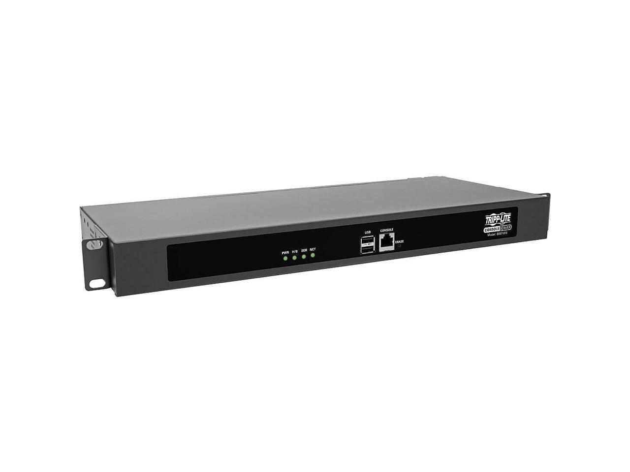 Tripp Lite Serial Console Server 16-Port 2 USB Ports Dual GbE 4 Gb Flash 1U - Twisted Pair - 2 x Network (RJ-45) - 2 x USB - 16 x Serial Port - 10/100/1000Base-T - Gigabit Ethernet - Desktop, Rack-mou