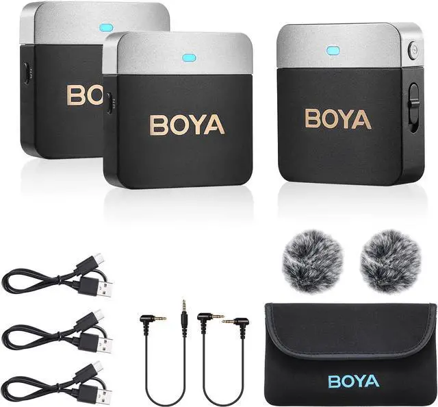 Wireless Microphones for Cameras: The BOYA BY-M1V2 is an incredibly lightweight, ultracompact and easy-to-use 2.4GHz wireless microphone system for up to 2 people.The BY-M1V2 includes 2 transmitter and 1 receiver and provides excellent sound quality for camearas,smartphones, tablets, DSLRs and camcorders