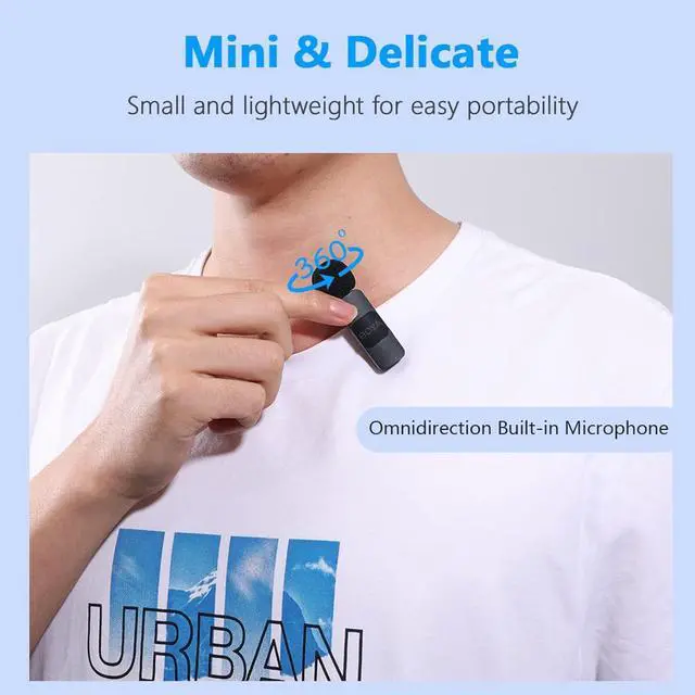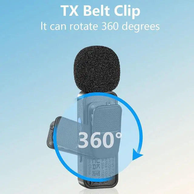 Mini Clip-on MicrophoneClassic mini style design, the microphone transmitter has a 360° rotatable backside clip, which allow you to fix the microphone to your collar conveniently.