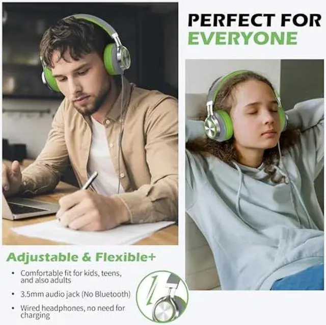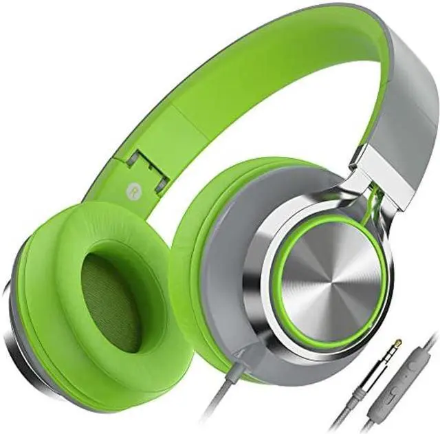 AILIHEN C8 Headphones Wired, On-Ear Headphones with Microphone and Volume Control, Corded 3.5 mm Headset for Boys Girl School Smartphones Chromebook Laptop Computer Tablets Airplane Travel (Grey/Green)