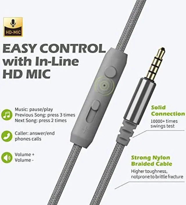 Widely Compatible: with a flexible and durable 47 inches braided cord and sturdy 3. 5 mm stereo Plug. Will not kink, twist or break under normal use. Use with all your favorite devices like cellphones, laptop, computer, Chromebook, MP3, MP4 and other Audio devices