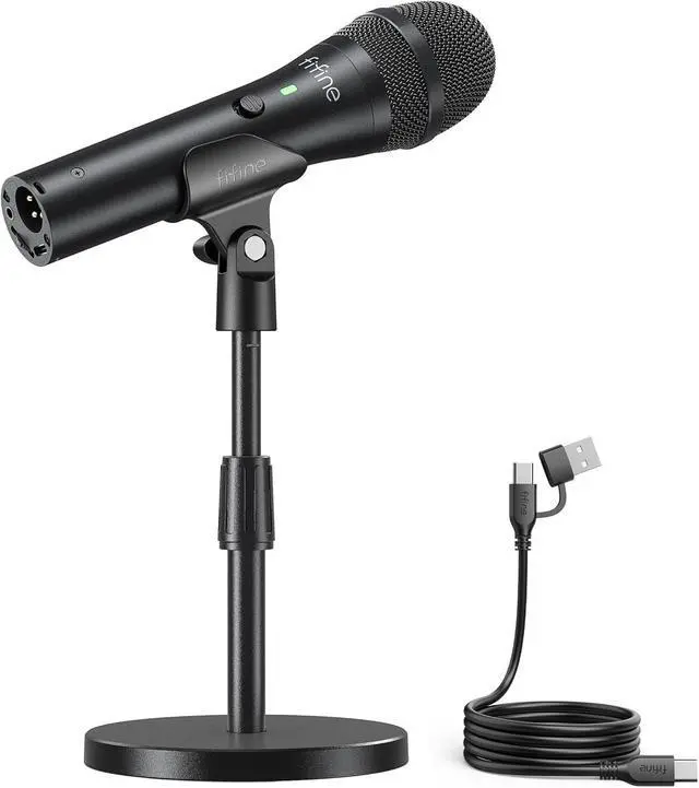 FIFINE USB/XLR Dynamic Microphone for Podcast Recording, Studio Handheld Mic Set with Desktop Stand for Vocal, Voice Over, Streaming, Black-AmpliTank TANK2