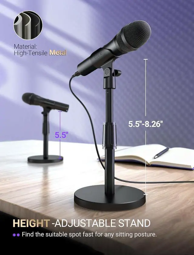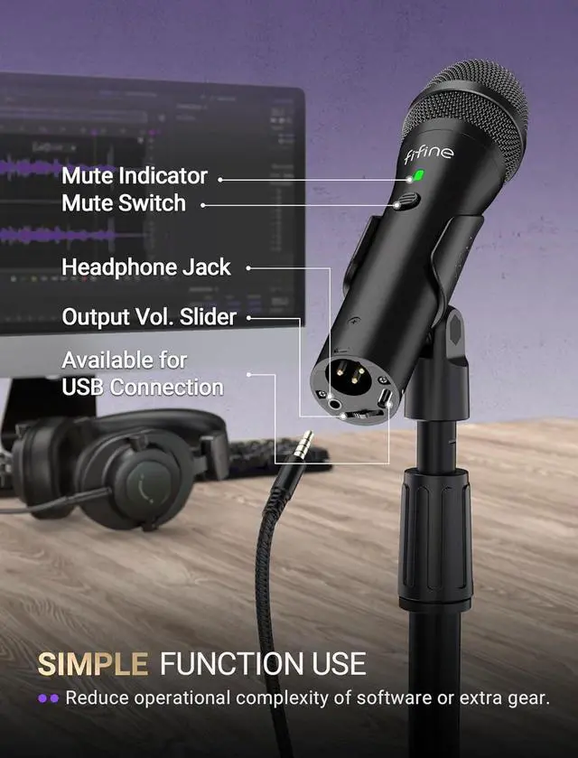 1Acoustic Design2Multiple-Layer Structure3Dual Optional Connection4Easy Function Key5Adjust Flexible Height 1Interactive Podcast2Immerse Music Creation3Clear Streaming Audio FIFNE USB/XLR Dynamic Microphone for Podcast