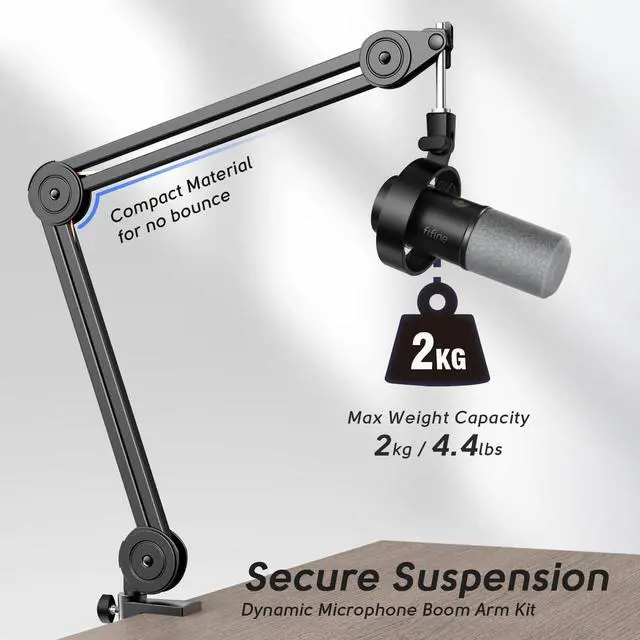 Large Capacity-Made of sturdy metal, the scissor mic arm pack tube is wide and thick enough. Multi-reinforced designs make the weight capacity of arm stand up to 2 kg. The compact and strong boom arm kit gives your microphone secure hold to reduce violent shaking from intense gaming operation or bump and hit.