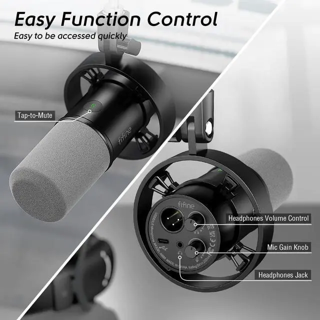 Function Keys Shows-Tap-to-mute on the USB mic front panel is handy to mute instead of pushing a button. Control the recording audio volume by gain knob on the studio mic for PC, to output more vivid broadcast audio.The podcast mic ability to 3.5mm jack real-time monitoring along with headphone volume control are added bonuses to record. (Only available for USB connection)