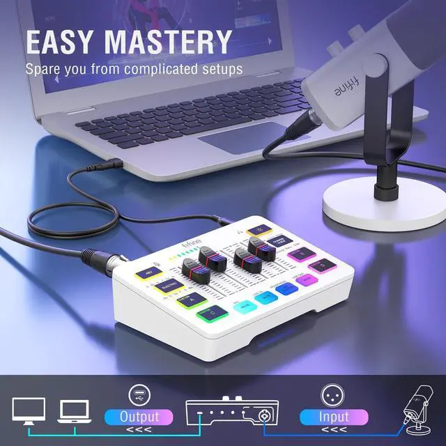 [XLR Microphone Interface] Supporting XLR microphone input, the mixer improve audio performance of your microphone. Built-in 48V phantom power, the streaming mixer do not need the additional power to your condenser microphone.