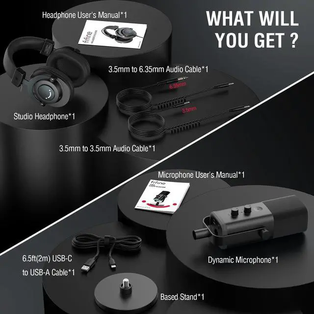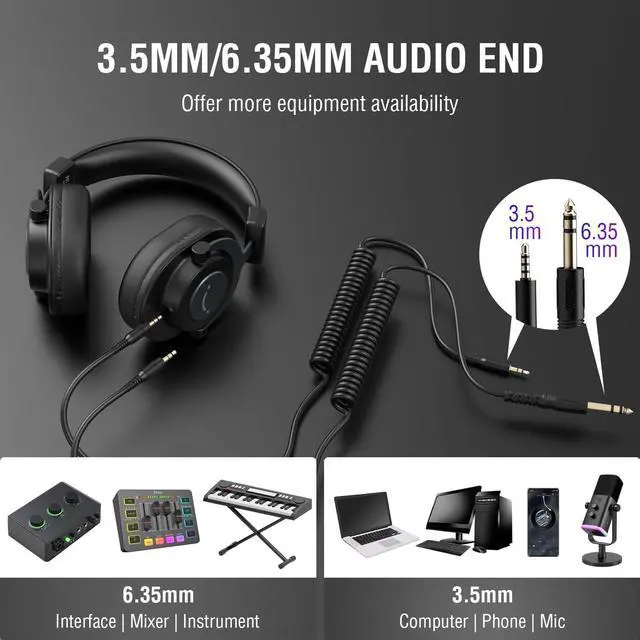 [User-Friendly Adjustability] These DJ headphones kit have a balanced designed for flexibility and durability. The headband can be easily adjusted to a comfortable position to prevent the PC headphones bundle from loosening during intense sessions, without break-in period for comfy feeling. Two 9.8ft detachable DJ-style coiled cables with 3.5mm and 1/4 audio plug ensure a wide-ranged of connection with mixer, audio interface, amp and mic with headphones jack.
