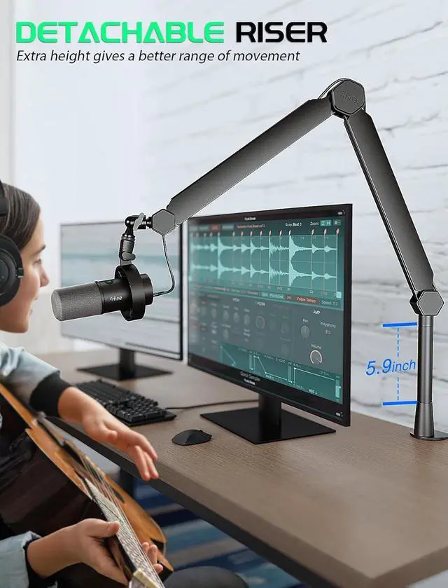 [Extension Tube] The microphone stand comes with extension tube with a 5.9 inch (150mm) height to extend. The application of an extension tube allow the mic stand to pass through the top of the monitor without obstructing the screen content and not block the space.