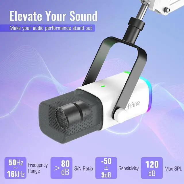 [Mesmerizing RGB Lighting] The PC gaming microphone kit illuminates your gaming setup with captivating RGB lighting, bringing a touch of elegance and beauty to your white-themed gaming station. And you can turn on/off and change the lighting by tapping RGB button. A dazzling array of RGB colors allows you to freely match your gaming space, making the otherworldly setting of your game live stream more realistic.