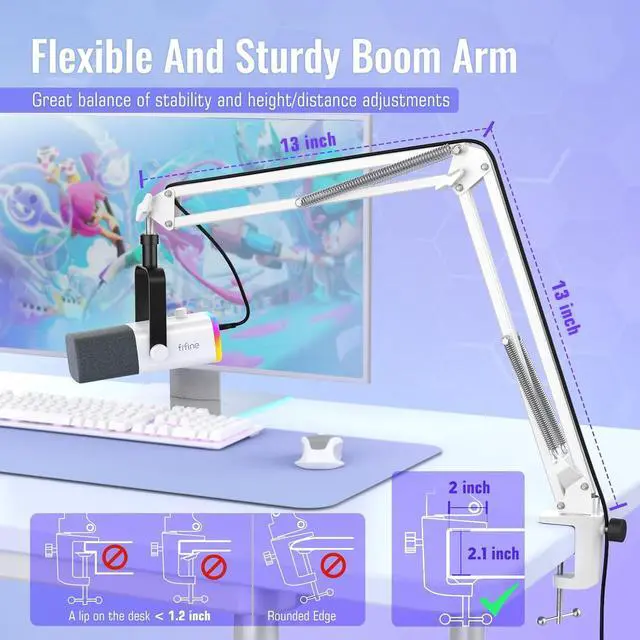 [Sleek Desktop/Arm Stand Options] The compact and stylish gaming mic for PC complements your white gaming setup, adding a stylish touch to your streaming sessions. Come with built-in 3/8" and 5/8" screw, this dynamic microphone for PC elevates your audio game whether it's mounted above or placed right on your desk. Whether you prefer the stability of a desktop stand, or the space-saving convenience of boom arm, this streaming microphone set does it all.