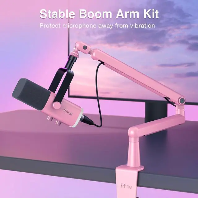 Low Profile Design-The low-profile design of mic stand pack stays out of your way, giving you more space on your desk. The mic stand bundle allows you to have your mouse under it or computer screen over it without blocking. The microphone boom arm stand set will improves your desk setup and integrate into your pink theme.