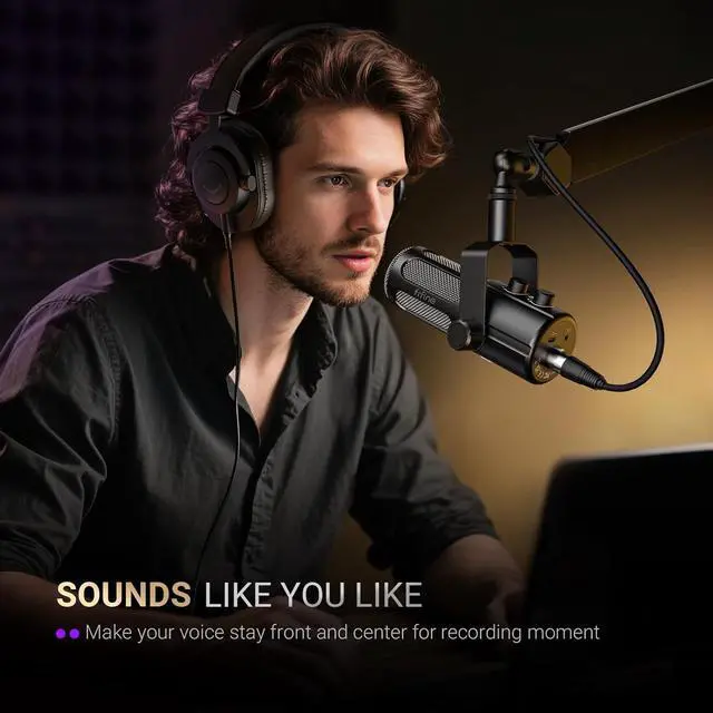 [Studio-Grade Audio] Featured 192KHz sampling rate with 24bit depth, the studio dynamic microphone captures nuanced vocal textures, from warm lows to crisp highs. The XLR podcast microphone with -74dB sensitivity and 70dB SNR minimize background hiss,while keeping the signal pure and crisp-no more clutter of background noise that fail to engage listeners.