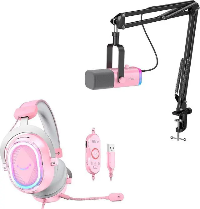 The pink gaming headset with vibrant RGB lighting combines rhombus chassis design and transparent casingradiating a futuristic look. One tap to change 11 static or dynamic RGB light effects with to match your mood or setup. The illuminated smiling-face logo transforms it into a stylish desktop piece. If you need more light effectscustomizing your own RGB light effects via Fifine Genie software