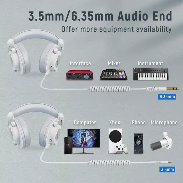 [Comfortable Ear-Cups Design] The white over-ear headphones are made of soft leather material that ensures a pleasant long-time wearing experience without stuffiness. Flexible foldable headbands of monitor headphones adopt a portable design, which can help you adjust comfy position easily.