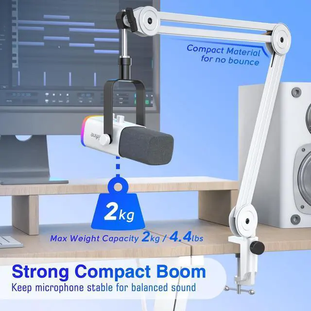 Heavy Duty-The mic stand made of sturdy metal and thickly wide boom arm pack give weight capacity up to 2 kg. The compact boom arm stand gives your microphone security and avoids violent shaking.