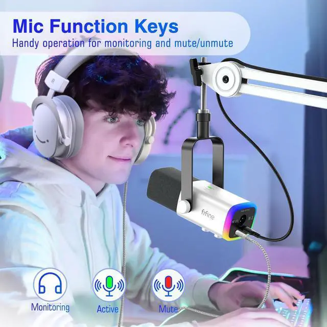 Mesmerizing RGB Lighting-The desktop gaming microphone bundle illuminates your gaming setup with captivating RGB lighting, bringing a touch of elegance and sophistication to your white-themed gaming station.