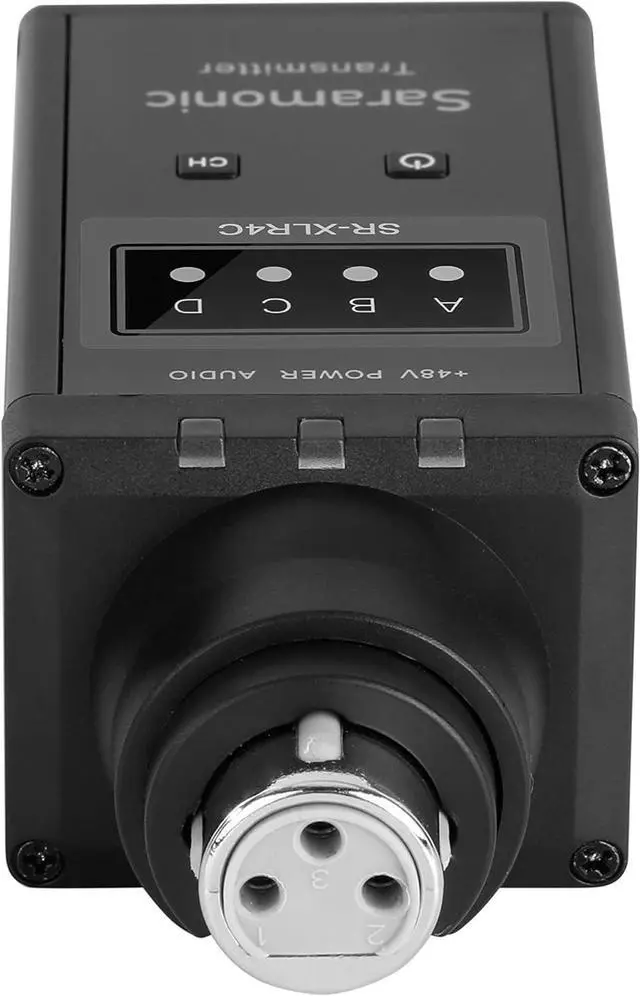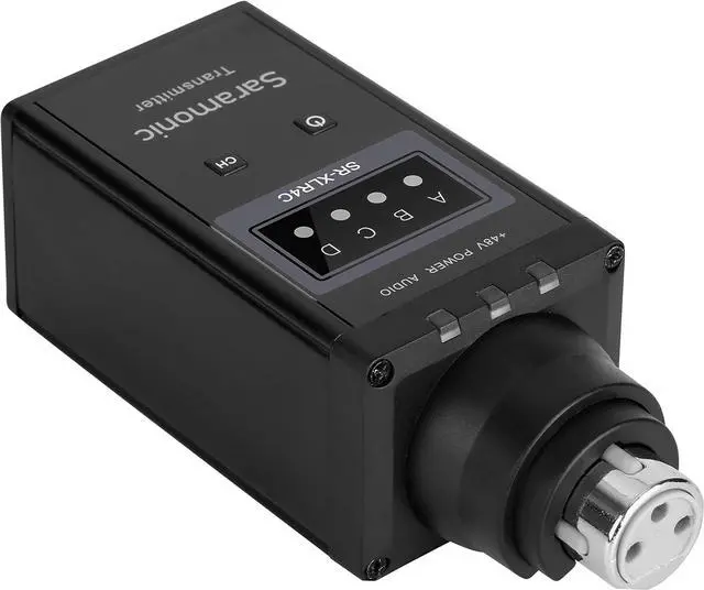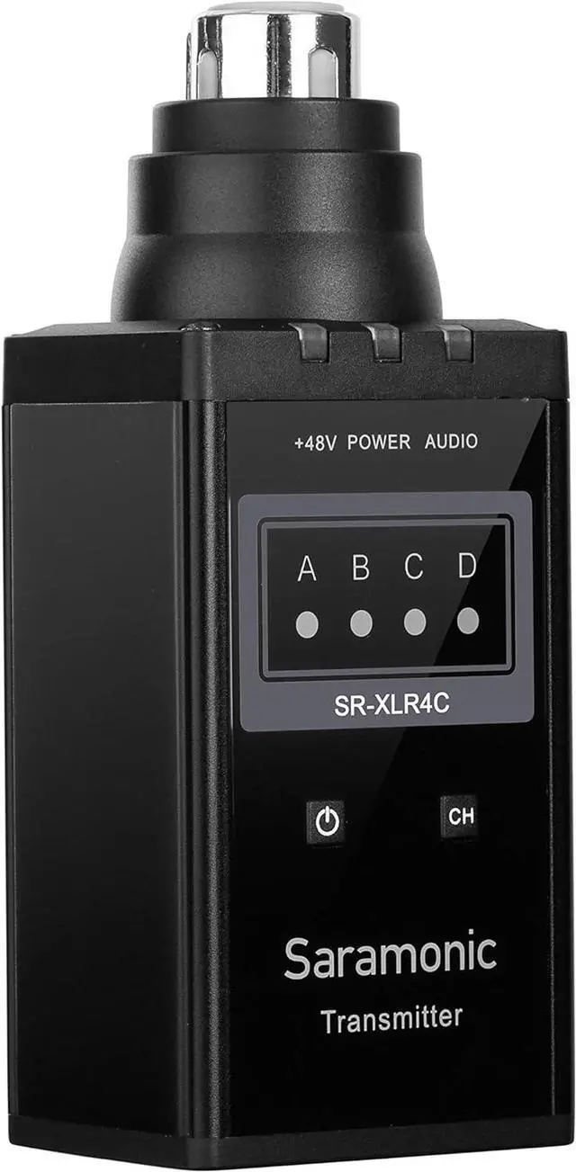 The Saramonic SR-XLR4C is a Wireless XLR Plug-in Microphone Transmitter designed to work with the SR-WM4C receiver. It can be used for DSLR cameras for videography, field recording, broadcast TV, and electronic news gathering (ENG) applications. Specifications Audio Input Connector: 3-pin Standard XLR Phantom Power Options: +48V or none Wireless Frequency: VHF 203-216MHz Signal to Noise Ratio: 70dB or more Voice Delay: 12ms Battery Type: 2 "AA"Alkaline Batteries Battery Life: 3 hours Dimensions: 4. 1 x 1. 65 x 1. 4" (10. 5 x 4. 2 x 3. 5cm) Weight: 4. 9 oz (139g)