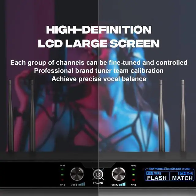 Exceeding Expecation of Wireless Performance: The 4-channel karaoke wireless microphone set features frequencies from 520 MHz to 580 MHz, providing superior signal stability and eliminating unwanted distortion; Powers on to match frequencies automatically