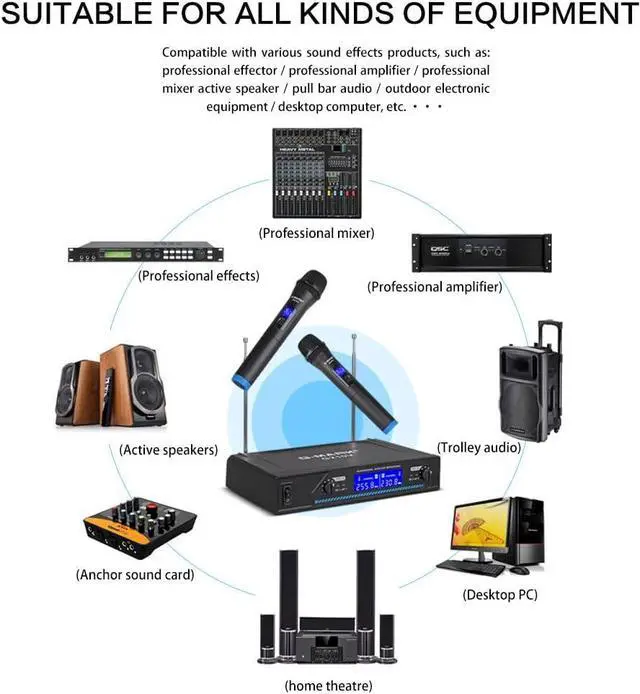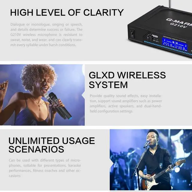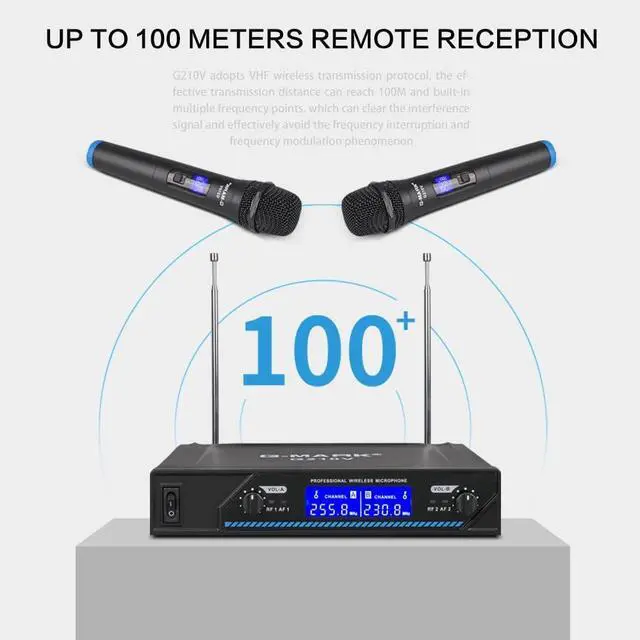 Wireless Range: The receiving distance of this wireless microphone system is about 30 meters to 50 meters, you can move with them to many places such as park, church, meeting room, djs party and so on