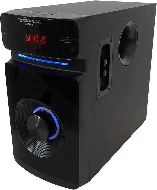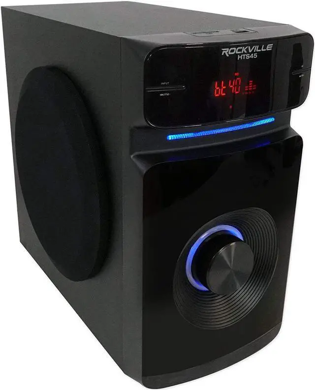Cinematic 5.1 With HTS45: Create a true surround setup with a powered 5.25" subwoofer (built-in receiver/amp) driving five matched satellites for balanced front, center, and rear channels. Bluetooth v5.0, optical/coaxial inputs, USB/SD (up to 64 GB), FM tuner, and AUX/RCA make TV, streaming, and gaming easy. Independent level control per speaker and sub helps you fine-tune rooms; response is 300 Hz20 kHz with loud, clean output for movies, sports, and music.