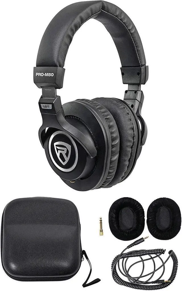 PRO-M50 Monitoring Headphones: Closed-back PRO-M50 studio headphones feature 40mm Neodymium drivers, a detachable 51" coiled 100% OFC cable and gold-plated 3.5mm plus ¼" adapter. Interchangeable suede and leather ear cushions, a hard leather travel case and a sturdy stainless-steel headband deliver long-session comfort and excellent isolation for mixing, tracking, streaming and podcast review with accurate, neutral playback.
