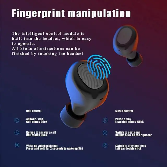 Fingerprint touchThe Bluetooth headset has a built-in intelligent control module that allows you to control your phone, songs, videos and more by using your fingerprint.The operation is simple and fast, and all kinds of instructions can be completed by just touching.