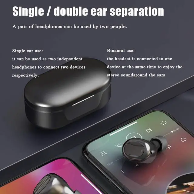 KMV Bluetooth headset is the latest multi-functional wireless headset after a long time of research.It will allow you to experience the beauty of music, give you an unprecedented auditory feast, and make you deeply fall in love with this earphone.This wireless earphone has Dual Stereo Surround Sound Quality, Key Speaker Drive Unit with High Quid and Low Distortion can bring shock bass, full mid-tone, crisp treble,rich sound to bring you enjoyment level of high quality.When you wear it, you will feel like you are in a live concert.