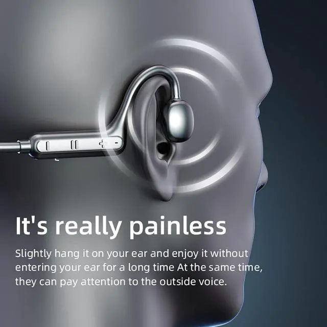 Instead of going inside your ears, these wireless headphones rest right on top. And they dont cover your ears or sit on top of your ears like over-ear or on-ear headphones. You will not feel ear pain after a long time of wearing.