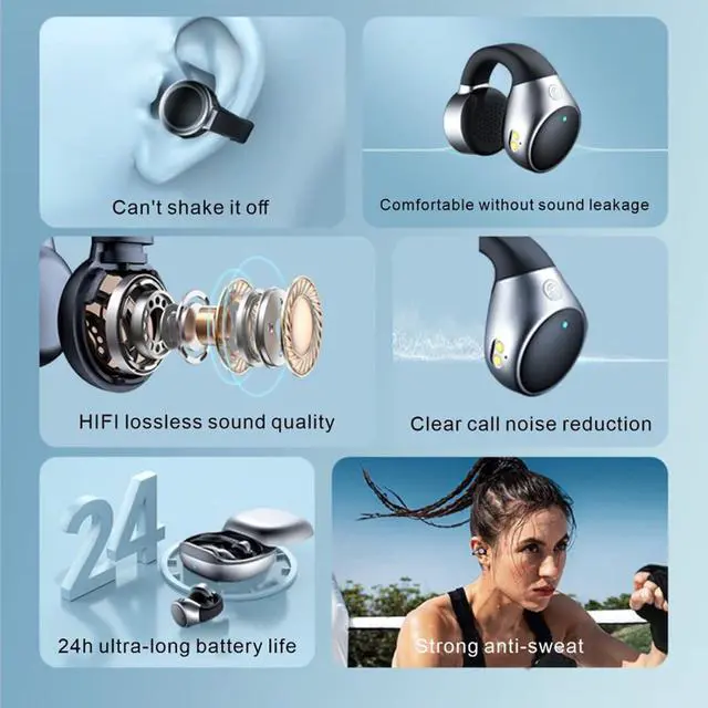 2.Wearing stability: bone conduction earbuds use a soft silicone material is comfortable to wear, ear clip design allows open ear headphones can be firmly fixed in the ear, suitable for sports enthusiasts and outdoor activities to wear