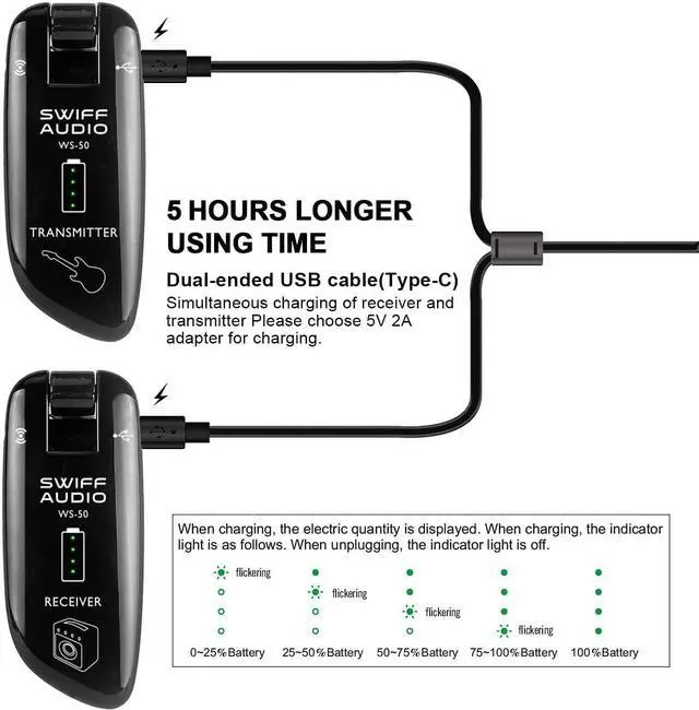 Built-in a 600mAh rechargeable lithium battery, sustainable use for more than 5 hours(a full charge needs 3 hours). Dual-ended USB cable is packed. Besides, double click, check the current battery power, easy operation.