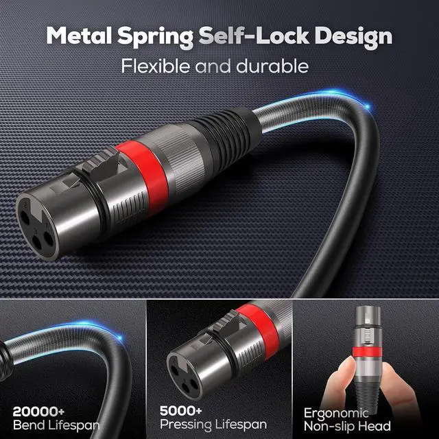 Durable for Use- The balanced XLR cable connector is made of a heavy-duty alloy material, ensuring its hardness and providing optimal connectivity, also designed to withstand the wear and tear of frequent use. Additionally, the 3-pin connector is made of copper, offering resistance against oxidation and corrosion.