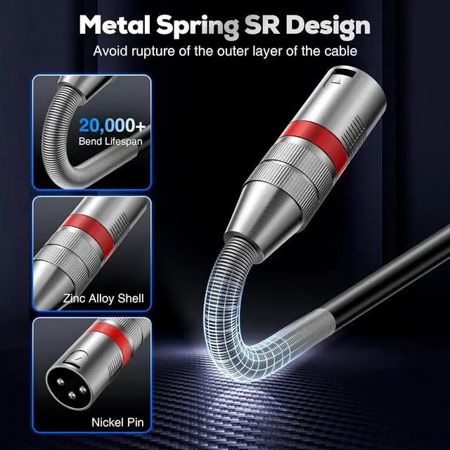Metal Spring SR Design- Bietrun XLR male to female cable features a durable metal spring SR design that offers enhanced flexibility and durability, making it resistant to breakage. Unlike common SR cables, it is built to last.