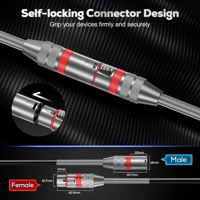 Durable for Use- The balanced XLR cable connector is made of a heavy-duty alloy material, ensuring its hardness and providing optimal connectivity, also designed to withstand the wear and tear of frequent use. Additionally, the 3-pin connector is made of copper, offering resistance against oxidation and corrosion.