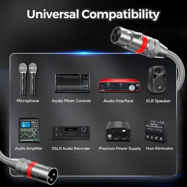 Wide Compatibility - This balanced mic cable is specifically designed for devices with 3-pin XLR connectors, such as patch bays, preamplifiers, speakers, microphones, and lighting equipment. It is widely used in stage sound, KTV, professional sound reinforcement, and more.