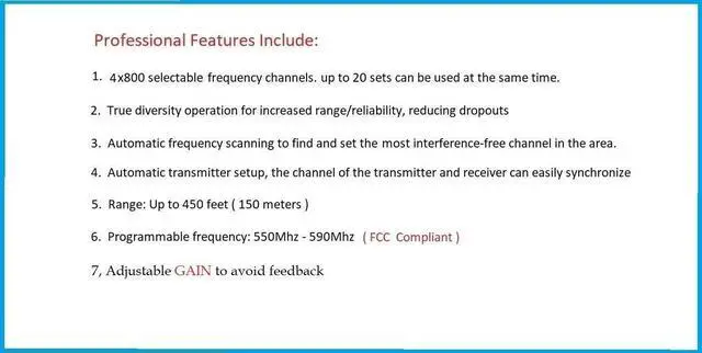 GTD Audio M-787 wireless microphone system delivers superior sound quality and professional features. It is designed for a wide range professional application with 4x800 selectable frequency channels, automatic frequency scanning, true diversity operation, Tone Lock squelch circuit, automatic transmitter setup. It's the perfect for professional use at any events.