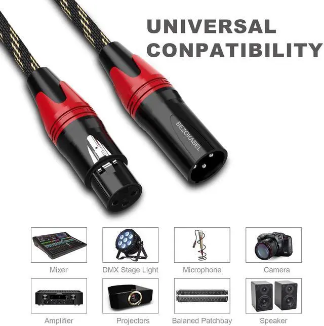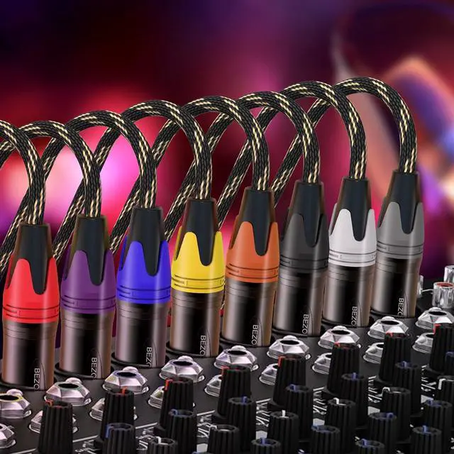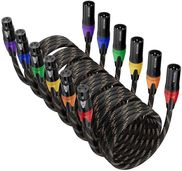 BEZOKABLE Color Coded Braided XLR Cable Packs Plug and Play & Self-locking Design Color Coded Connectors, Easier to Track, Perfect for Stage.