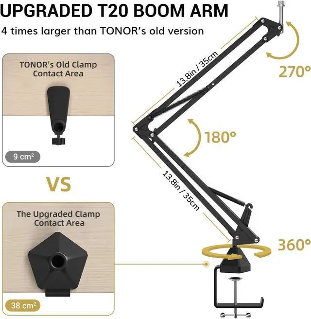 Condenser Microphone * 1, Metal Shock Mount * 1, Mic Cover * 1, Pop Filter * 1, Boom Arm * 1, Desk Clamp * 1, Cable Ties * 4, XLR Male to XLR Female Cable * 1 Manual * 1