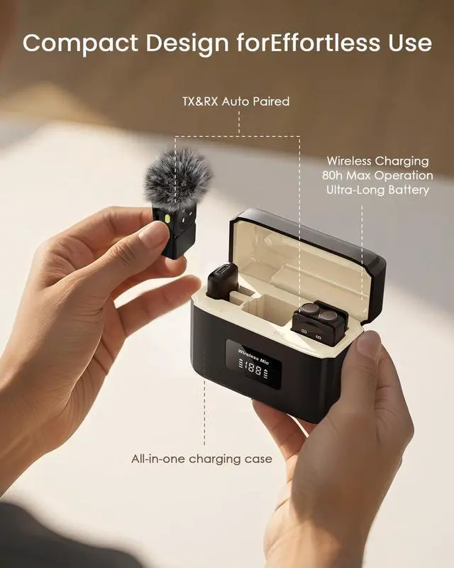 Worry-Free Battery Life:This Bluetooth microphone comes with dual wireless microphones and a compact charging case that gives the dual microphones over 20 hours of continuous use on a full charge. The charging case also ensures extended battery life, making it ideal for extended recording sessions or use on the go.