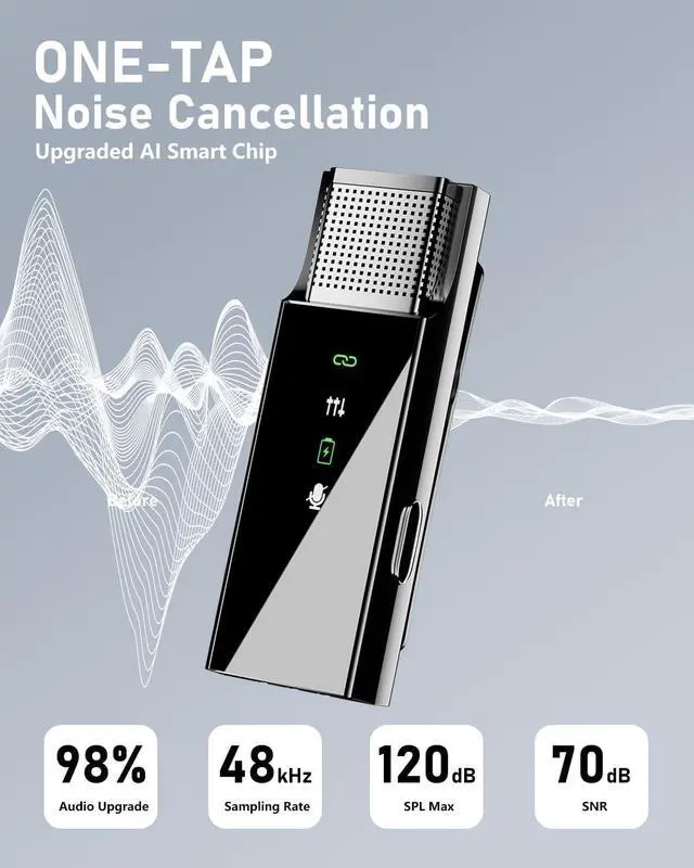 Exceptional Noise Cancellation: In todays noisy world, background distractions can easily ruin a recording. But with the ZERFUN 4, those worries become a thing of the past. Its one-tap noise cancellation feature, combined with an impressive 70dB SNR (Signal-to-Noise Ratio), actively hunts down and eliminates unwanted ambient noise. Whether you're recording in a bustling coffee shop, a busy street, or near a construction site, the upgraded smart chip works tirelessly, offering a 98% audio upgrade. Perfect for podcasters who often record on the go, vloggers filming in public spaces, or live streamers in crowded venues, ZERFUN 4 ensures your voice is the star of the show.