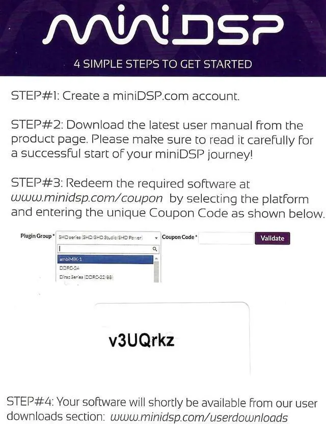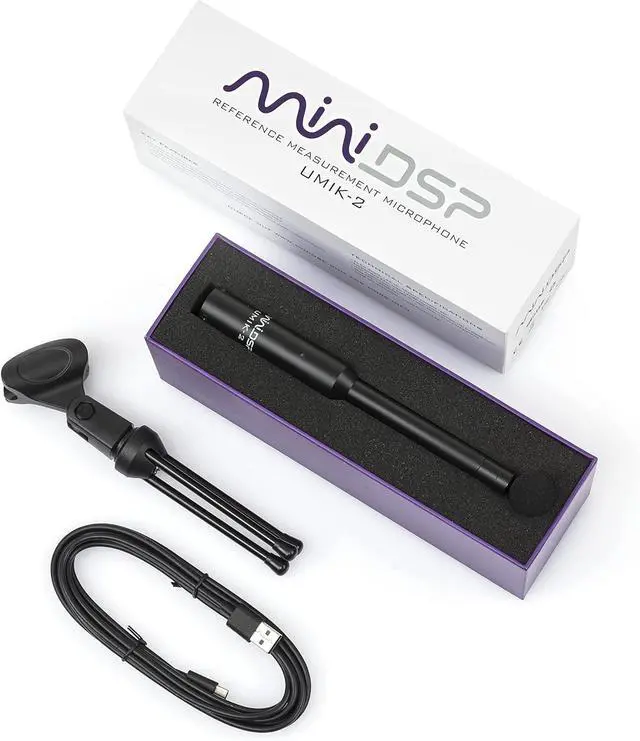 The miniDSP UMIK-2 is a reference grade, calibrated, omni-directional USB measurement microphone. The UMIK-2 features a low-noise ½-inch microphone capsule, low-noise A/D convertor, and support for sample rates from 44.1 to 192 kHz. Each UMIK-2 has a unique calibration file for measurement accuracy. A generated 90-degree calibration file is also provided for multichannel/surround-sound applications. The UMIK-2 has driverless operation with macOS, Linux, Android and iOS. A supplied ASIO driver for Windows ensures simple integration into many measurement and recording applications. The UMIK-2 is of course fully compatible with Room EQ Wizard (REW) and Dirac Live (version 3 and later). Many other applications are also perfectly suited to the UMIK-2: Speaker measurement and design Room corrections Acoustical measurement and characterization. For use with a PC the included coupon for downloading the ASIO driver is required. If you have any issues please contact your seller of miniDSP.