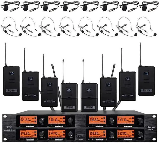 8 Channel Receiver with 8 lavalier 8 headsets Microphones
