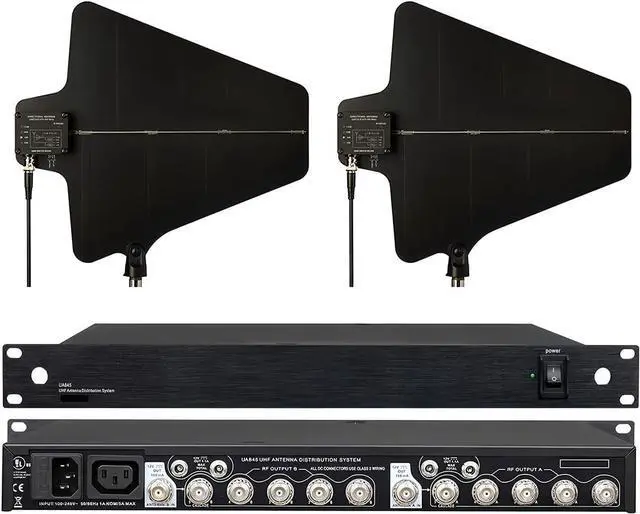 UHF 400-970MHz 5 way Antenna Distribution System with 2 Active Antenna Paddle for UHF Wireless Microphone SystemSuitable for professional stage performance/wedding/speech/outdoor broadcasting